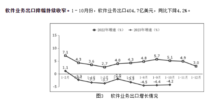 軟件業(yè)務(wù)出口雖然受到一些外部因素的影響,同比下降4.2%,但降幅持續收窄,預示著(zhù)行業(yè)正在穩步復蘇。